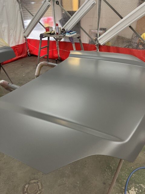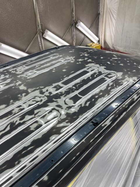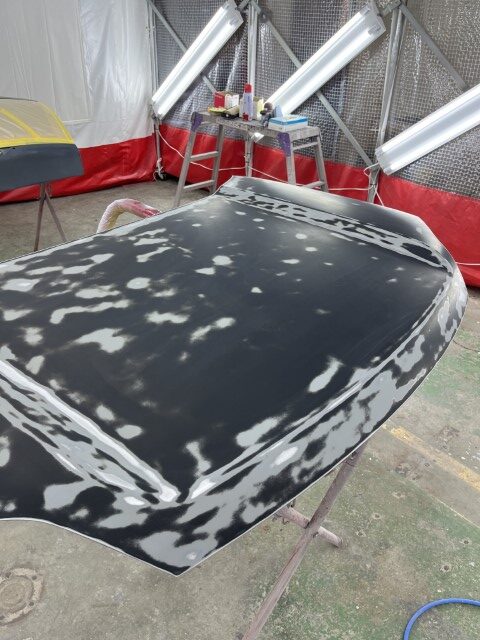 パネル類を組み付け塗装時に付着したブツをつぶすために磨きます。