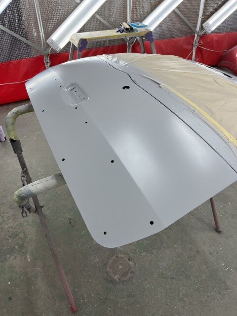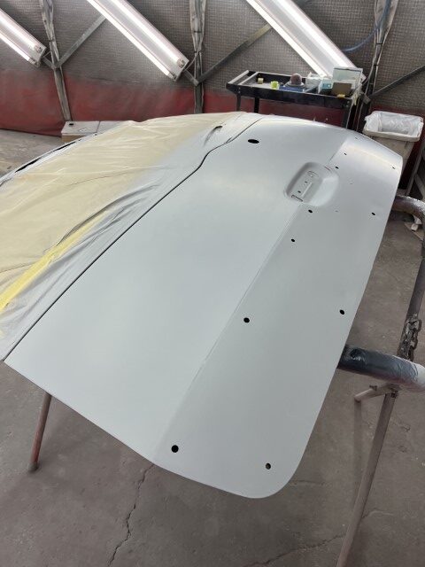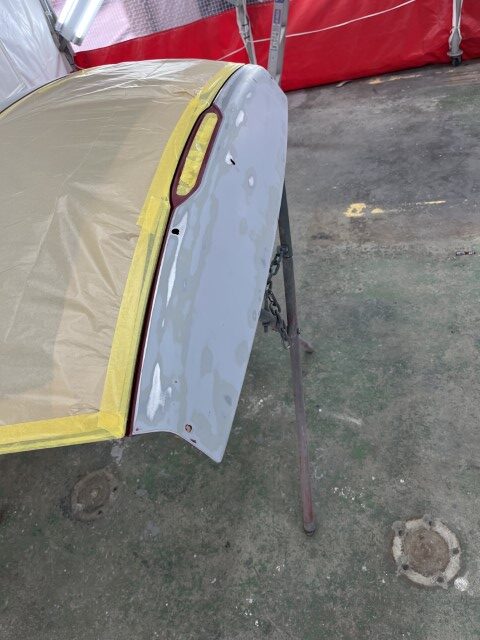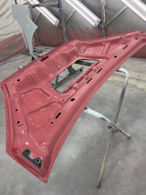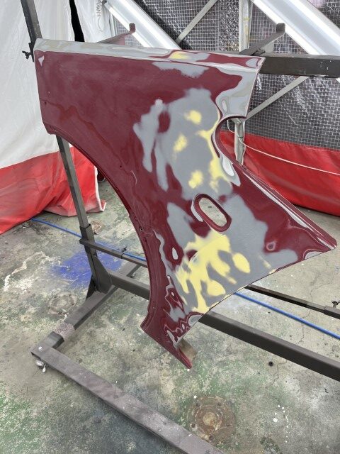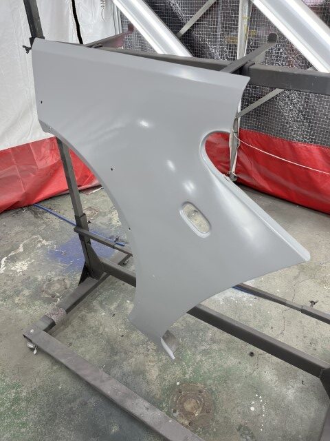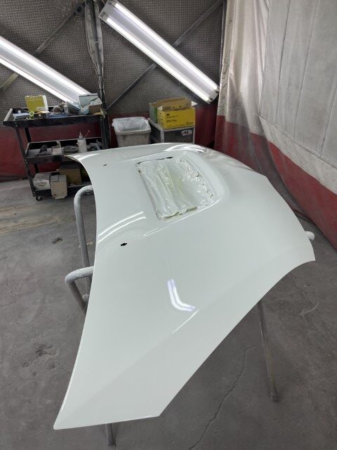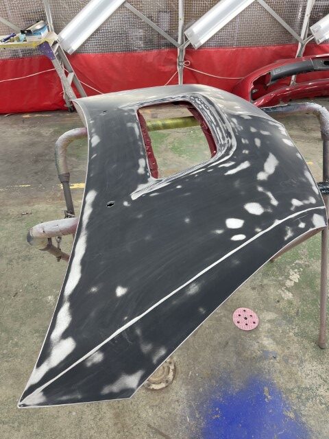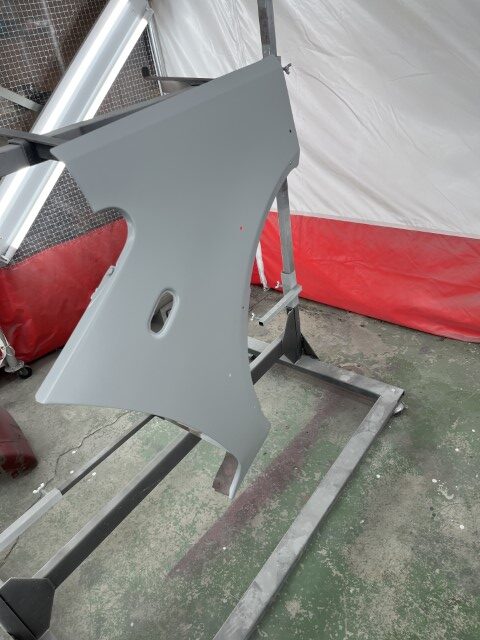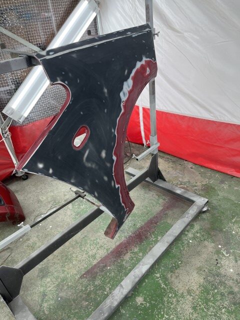 ボンネットの裏だけは塗装しました。フェンダーも同時に進行しています。