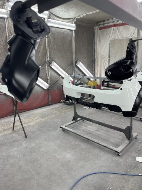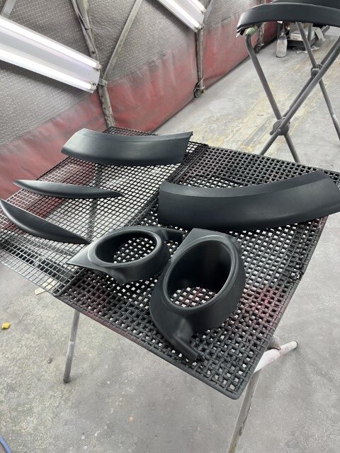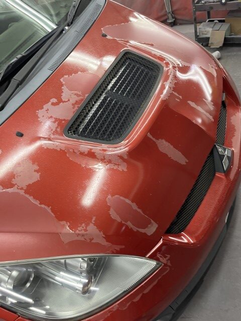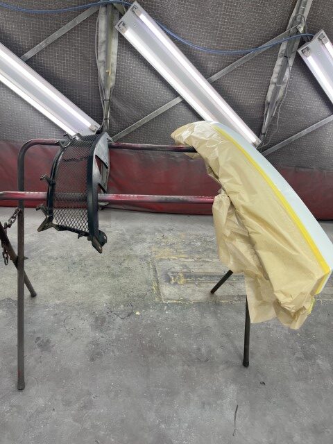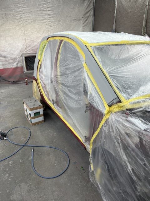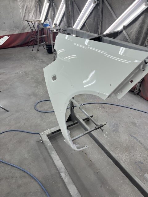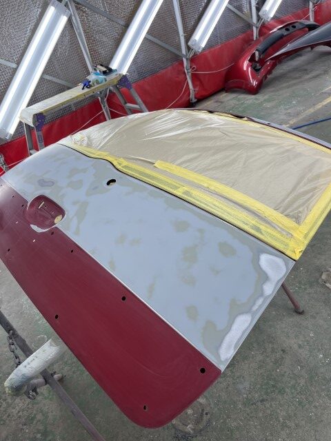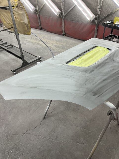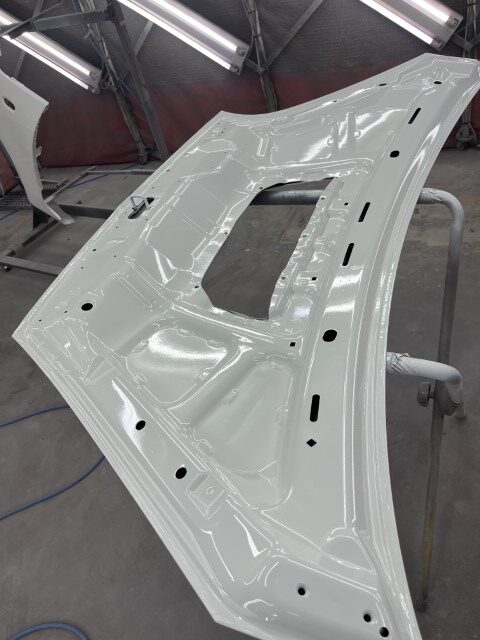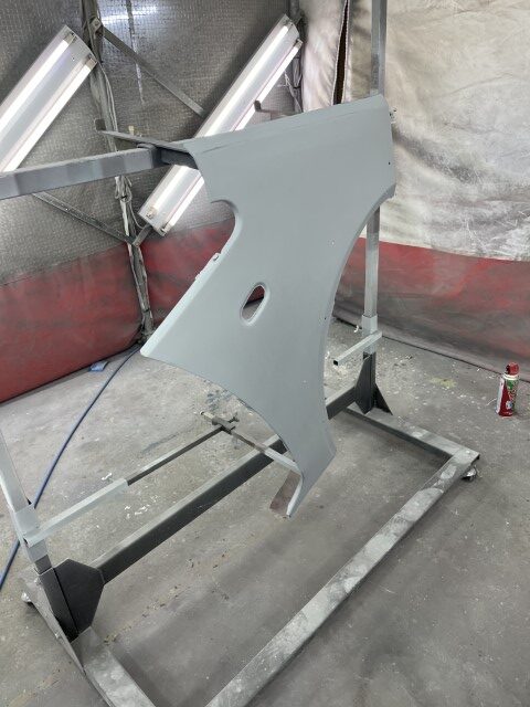 ボンネットの裏だけは塗装しました。フェンダーも同時に進行しています。